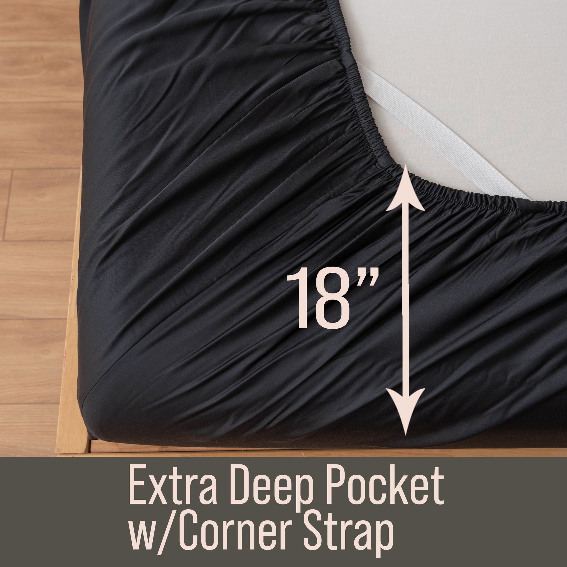 With an 18" extra-deep pocket, this fitted sheet hugs even the plushest pillow-top mattresses for a secure, wrinkle-free fit. Integrated corner straps provide added stability and help keep the sheet in place throughout the night.